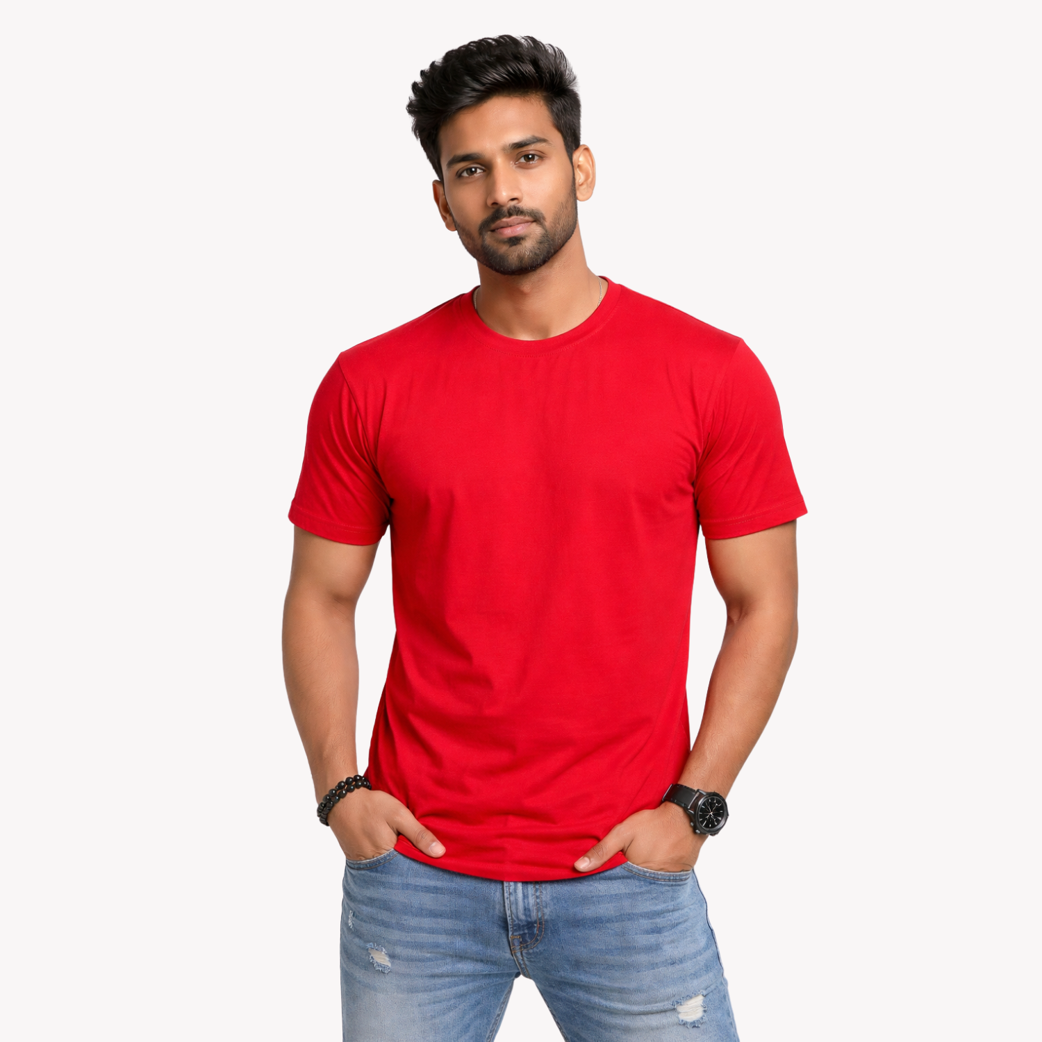 Athlayer Red Solid Men Round Neck T-Shirt